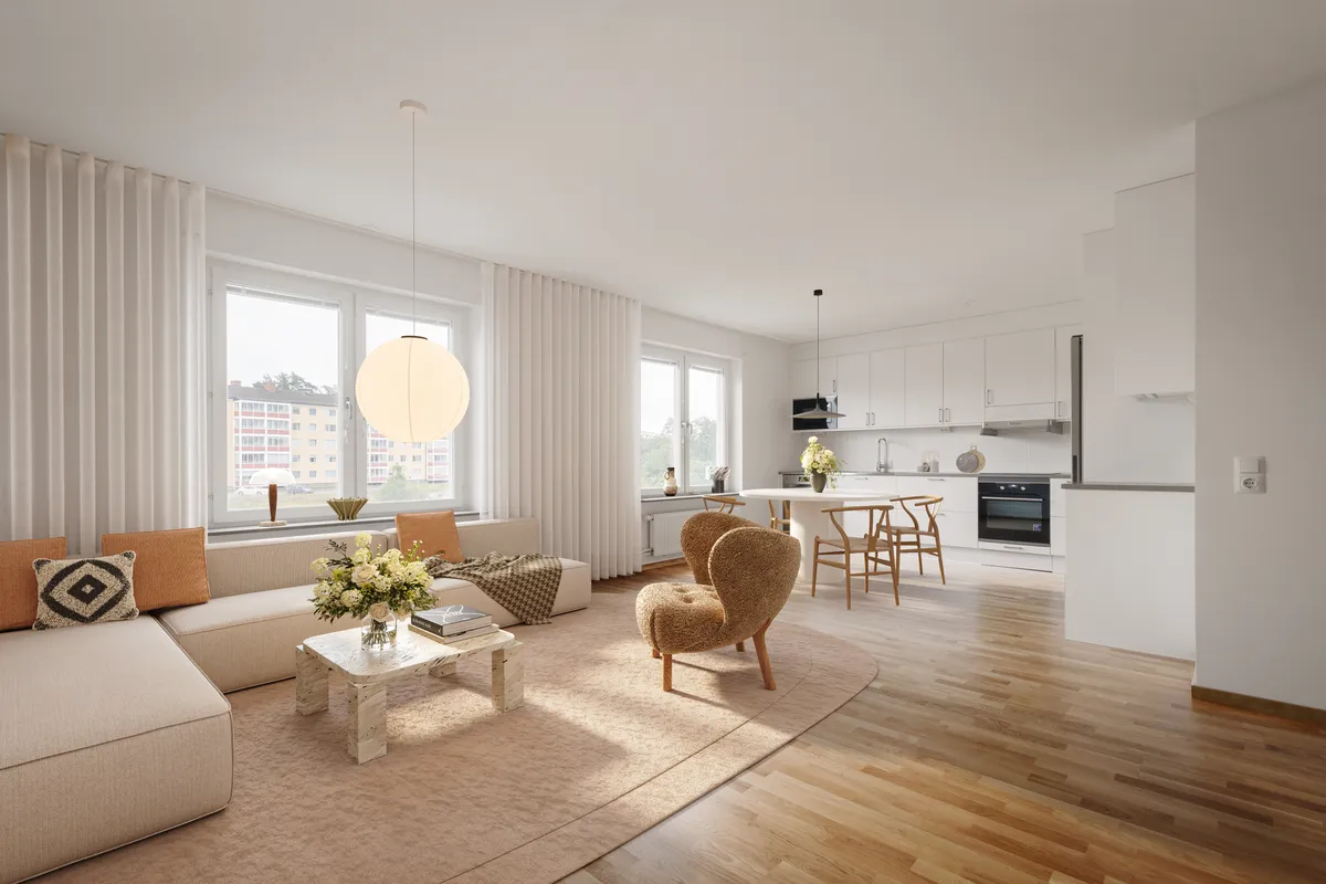 Unik 2-rumslägenhet på bottenplan med UTEPLATS om 11 kvm! Välkommen hem till Flora – moderna hyresrätter i hjärtat av Söderdalen, Jakobsberg I Flora bor du bekvämt i en nyproducerad lägenhet med hög standard och genomtänkta materialval. Köket är stilrent och modernt med vita luckor, rostfria detaljer, bänkskiva och stänkskydd i laminat samt utrustat med både diskmaskin och mikrovågsugn. Badrummet har grått klinkergolv, vita helkaklade väggar och kombimaskin för smidig tvätt i hemmet. Här ingår det mesta i hyran – uppvärmning, kallvatten, bredband (1000/1000 Mbit/s), basutbud för TV och telefoni via Telia samt ett eget förråd i källare eller på vind. Varmvatten och hushållsel mäts individuellt, vilket gör att du bara betalar för din faktiska förbrukning. I huset finns även cykelrum samt förråd för barnvagn och rullstol. Flora består av sexvåningshus i ljusblå och vit putsfasad, byggda kring en grön och välkomnande innergård – en naturlig plats för gemenskap och avkoppling. Här bor du granne med Lillängsparken och har nära till både förskola, skolor, träningsanläggningar, simhall och golfbana. På gångavstånd når du Jakobsbergs Centrum med butiker, restauranger och pendeltåg som tar dig till Stockholm City på ca 20 minuter. En kort cykeltur bort ligger Barkarby Handelsplats med ett brett shoppingutbud. Med solpaneler på taken, källsortering i huset och garageplatser att hyra via Sveriges Parkering är Flora ett hem som förenar modern bekvämlighet med hållbarhet. OBS: Bilderna i annonsen är exempelbilder från andra lägenheter i fastigheten. Standard och materialval är desamma, men planlösning kan variera.