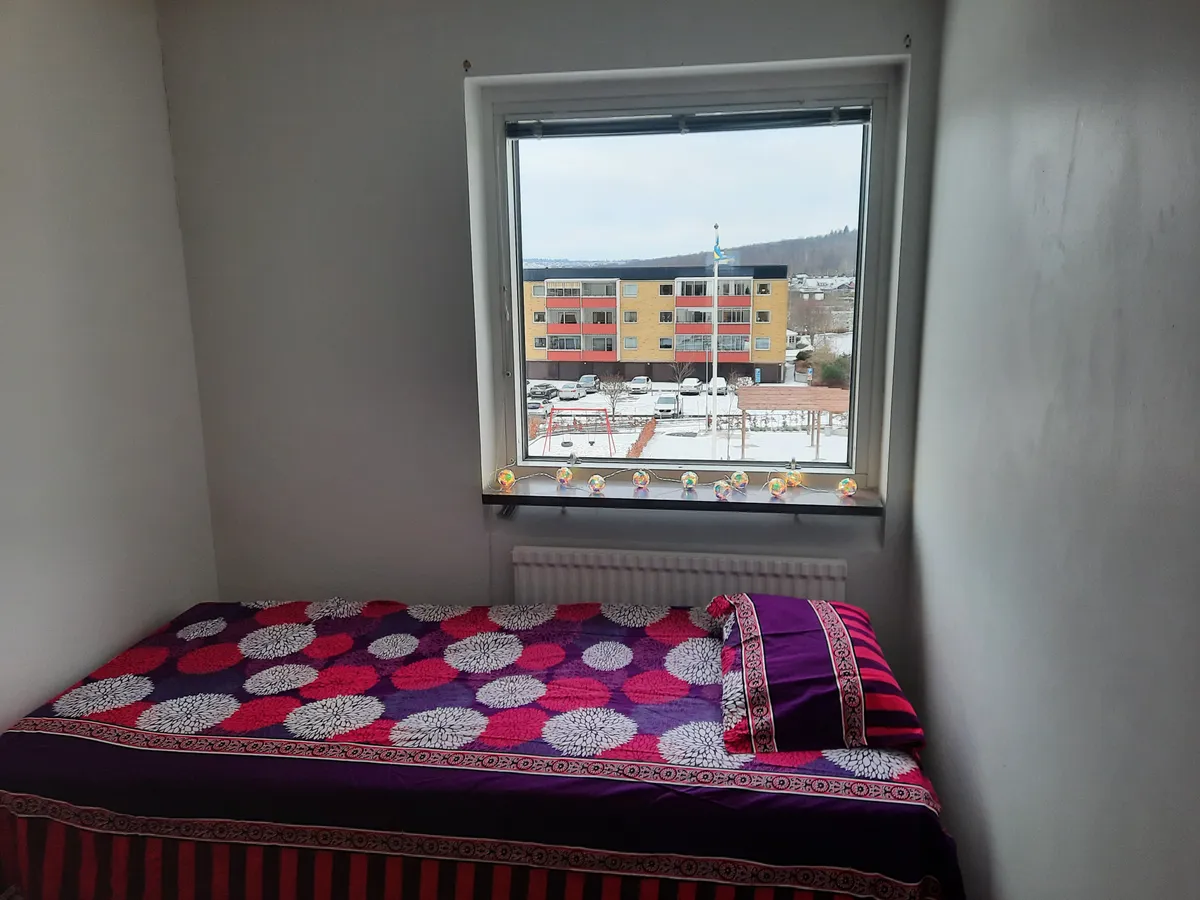 Renting out one room in a 3 room apartment located in 3rd floor near Ekhagen Student Apartments, one of the nicest community in Jönköping. Furnished but it can be customised. Nice garden view, lake view from balcony. You have access to part of living room, yoga space, private TV, kitchen and kitchen tools, cycle room, clothes, washing room. There is large space for clothes and personal stuff, very spacious apartment. There is a young professional in the other room 32 years calm and quiet person. Ocassionally Guest and partner allowed. No smoking, no vaping inside room. No pets allowed. One month notice period when you decide to leave.