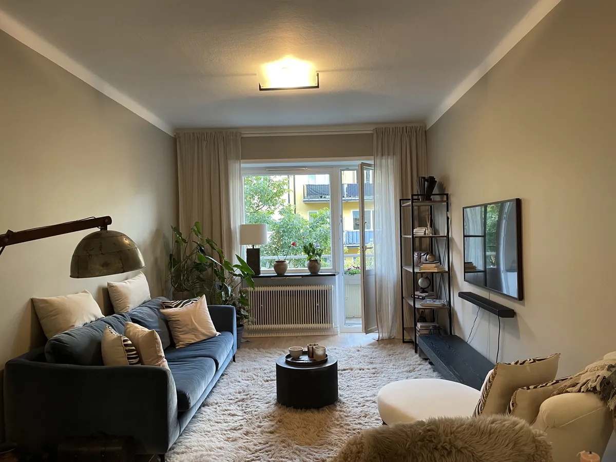 *Scroll down for description in ENG Välkommen till denna topprenoverade och exklusiva 2 rok (48 m2), belägen i Solnas allra populäraste kvarter och gata Förrådsgatan - i hjärtat av mysiga Gamla Råsunda med närhet till allt du/ni kan behöva! Lägenheten uthyres under 12 månader. Uthyres till en lugn, ordningssam och stabil person, eller ett par, som är rök- och djurfri(a) med en fast anställning utan anmärkningar. Om lägenheten: Otroligt välplanerad bostad med den öppna och mysiga planlösningen mellan kök och vardagsrum, ljusinsläpp från två väderstreck, hiss, balkong med perfekt läge bakom träd för minskad insyn samt morgon/förmiddagssol. Topprenoverat kök med all utrustning du/ni behöver, samt badrum (tvätt/torkmaskin, dusch, handdukstorkare m.m). Vad ingår i hyran: - Kabel-TV/bredband (av samma standard som ingår i månadsavgiften) - Värme/vatten - Delvis möblerad Vad ingår inte i hyran: - El - Nödvändiga försäkringar som krävs - Tillgång till förråd - Andra eventuella extrakostnader Om området: Inom gångavstånd från lägenheten finns Råsunda Piazza med mysiga restauranger/caféer, butiker (ICA/Coop), gym, simhall, grönskande parker och promenadstråk kring sjöar, shopping (Mall of Scandinavia/Solna Centrum) samt utmärkt tillgång till kommunikationer (t-bana, pendeltåg, bussar, tvärbana). * Welcome to this top-renovated and exclusive two-room apartment (48m2) located in Solna's most popular neighborhood and street in the heart of Gamla Råsunda, Förrådsgatan where you'll have everything you'll need just around the corner! It is rented for 12 months. To be rented out to a calm and tidy person, or couple, with a stable income and employment who are pet- and smoke free. About the apartment: Perfectly planned home with the open and cozy floor plan between the kitchen and living room, light coming in from two directions, elevator, balcony with sun in the morning/noon etc. Newly renovated kitchen (fully equipped) and bathroom (shower, washing/dryer mach.
