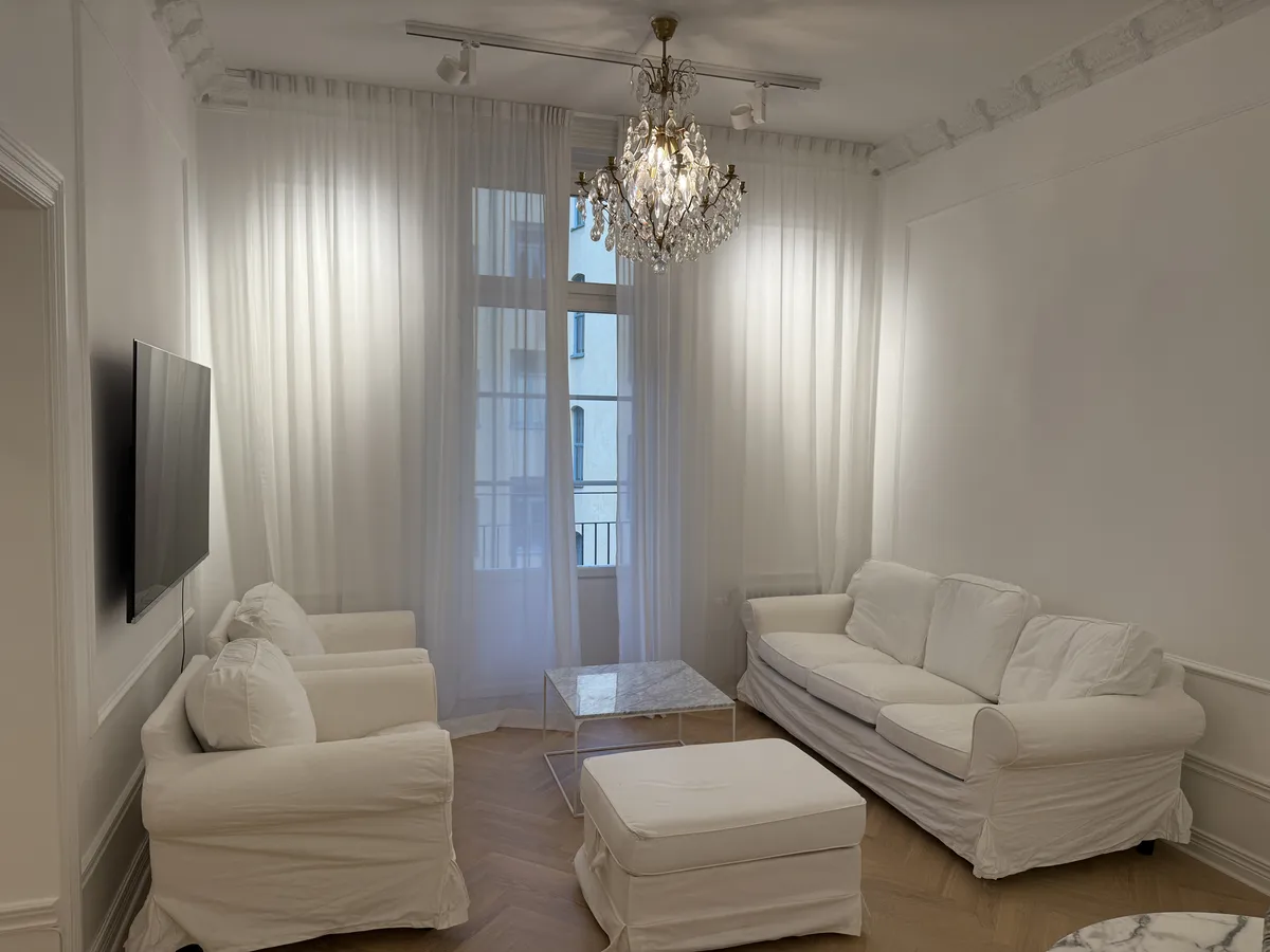 Nyrenoverad, fräsch tvåa på toppläge i Stockholm. Stort vardagsrum och kök, balkong som vetter in mot innergården. Stukaturer på väggar och tak. Trevlig förening