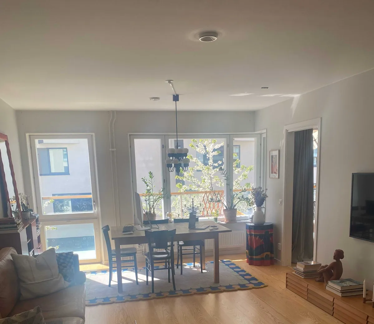 Området är väldigt tyst och lugnt. Härlig balkong med sol större delen av dagen på sommaren och utsikt mot grönska. 200m till en bra mataffär och bussen går precis i närheten. Massor av aktiviteter och fina naturområden runt knuten Tar inte lång tid att promenera, cykla eller åka buss in till city.