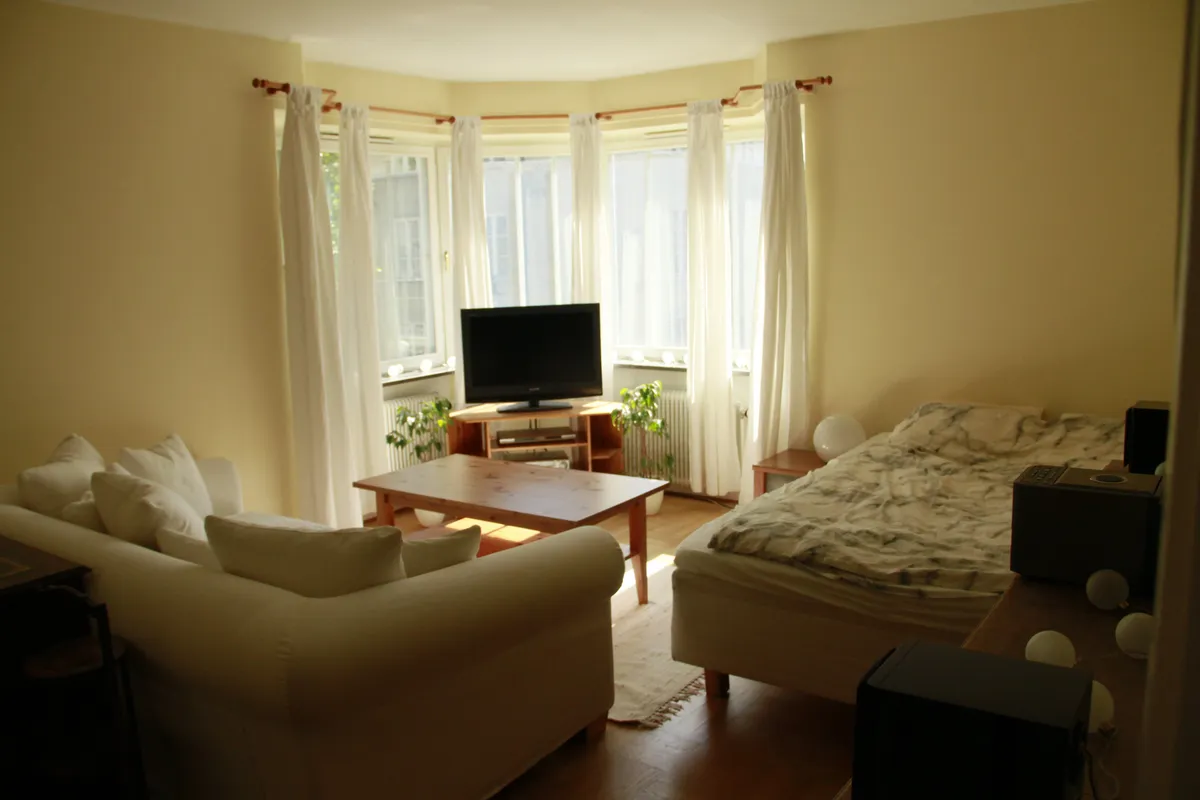 Jag har en tvåa på 63 m2. Rummet som är till uthyrning är c:a 24 m2 och fullt möblerat med en 160 säng (sängkläder ingår), skrivbord, soffa, TV, stereo. Du kommer också ha tillgång till fullt utrustat kök och badrum av modern standard (helrenoverat 2015). Rymlig klädbyrå finns såväl som två garderober i hallen med klädstänger och galgar. Bokningsbar tvättstuga finns i källaren. El och wi-fi ingår i hyran.