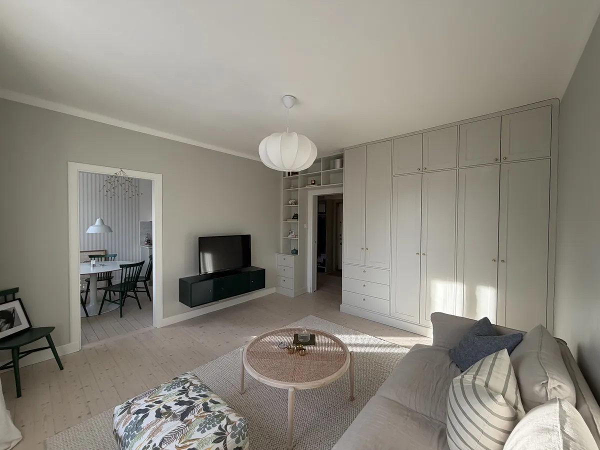 Jag flyttade in på Salagatan 2024 och gjorde då en totalrenovering av lägenheten, så allt är fräscht och i fint skick. Planlösningen är genomtänkt med separat hall, vardagsrum, kök och sovdel, vilket tillsammans med takhöjden (2,7 m) gör att lägenheten känns rymlig. I vardagsrummet finns en stor platsbyggd garderob med bra förvaring. Lägenheten hyrs ut möblerad och fullt utrustad, det är bara att flytta in. Möbler, TV, Chromecast, porslin, köksredskap, diskmaskin m.m. finns. I källaren finns cykelförråd, tvättstuga, torkrum och en gemensam bastu, och innergården är lummig och lugn med flera fina sittplatser samt grill som går att boka. Läget är väldigt smidigt, ca 5 minuters gång till centralstationen (2 minuter när det är riktigt bråttom :)), mataffärer inom 3–9 minuters gång och 10–15 minuters gångavstånd till Fyrisån. Jag hyr ut lägenheten eftersom jag ska provbo tillsammans med min kille, och söker en hyresgäst som vill ta hand om den lika väl som jag har gjort.